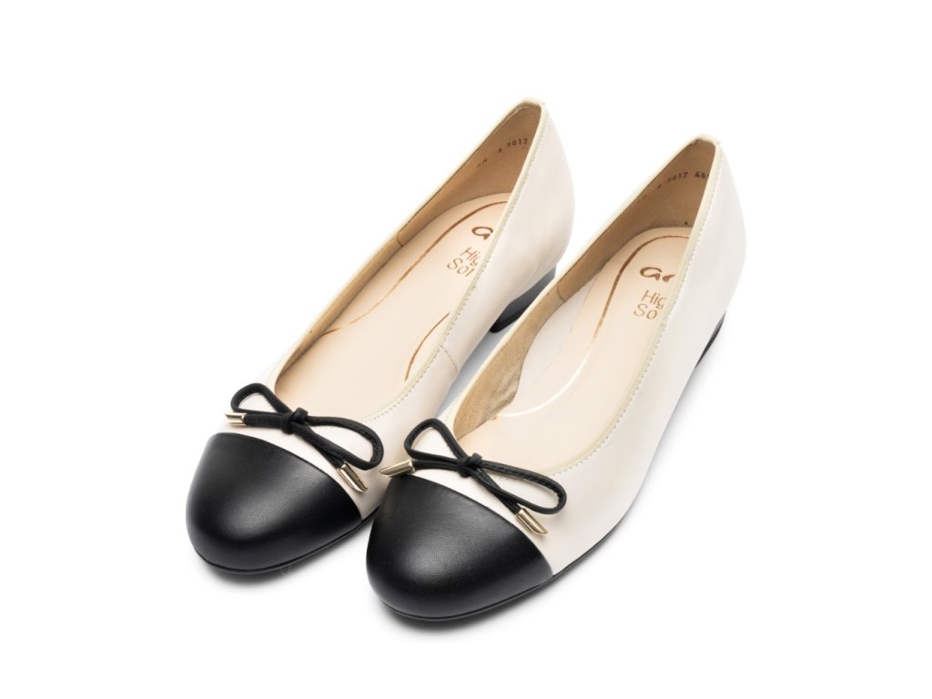 S těmito pohodlnými balerínami Bari v černo-krémové kombinaci budou módní ženy vždy krok napřed. Vyrobené z mimořádně měkké kůže se dokonale přizpůsobí noze a skvěle padnou. Pevně všitá stélka je měkce polstrovaná a potažená kůží, což zaručuje příjemné klima pro chodidla. Ještě větší komfort přináší inovativní technologie HighSoft, která kombinuje měkký svrchní materiál s pohodlnou stélkou a umožňuje mimořádně měkký došlap. Měkká podšívka dále zvyšuje pohodlí. Elegantní vzhled doplňuje stylová špička, decentní mašlička a nízký blokový podpatek, který spolu s protiskluzovou podešví zajišťuje stabilní krok. Tyto baleríny se skvěle hodí k džínám a tričku pro ležérní vzhled, ale také k šatům pro slavnostní příležitosti.