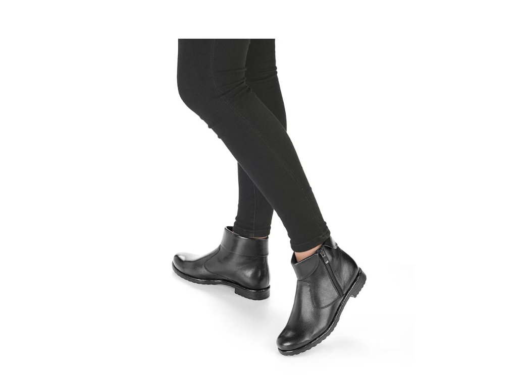 Elegantní dámský kotník Liverpool v černém provedení kombinuje jednoduchý, nadčasový design s moderními detaily. Svršek z kvalitní hladké kůže působí luxusně a jemně obepíná chodidlo, módní ohrnutí u kratšího sáry dodává botě šmrnc. Vnitřek je vybaven měkkou textilní podšívkou, která zajistí příjemné klima a tepelný komfort. Inovativní technologie HighSoft® v kombinaci se speciální pěnovou vložkou v oblasti bříška chodidla přináší měkký došlap, jemně podepírá klenbu a poskytuje pružnost i po celodenním nošení. Vyjímatelná stélka umožňuje použití vlastních ortopedických vložek, což zvyšuje variabilitu a komfort. Praktický zip na vnitřní straně usnadňuje obutí, zatímco protiskluzová podešev a stabilní podpatek o výšce 2 cm zajišťují jistotu při každém kroku. Výška sáry 12 cm dává obuvi univerzální charakter – hodí se jak k elegantnímu business outfitu, tak k ležérním džínům. Kotník Ara Liverpool je perfektní volbou pro ženy, které hledají boty spojující eleganci, pohodlí a funkčnost.