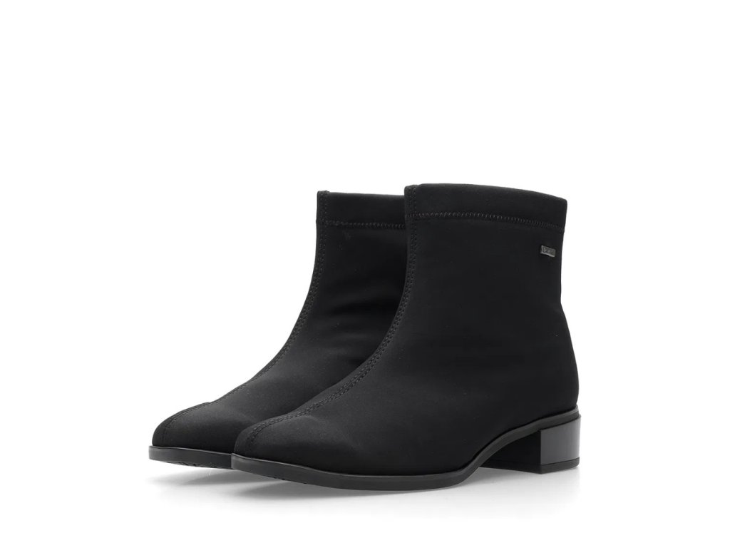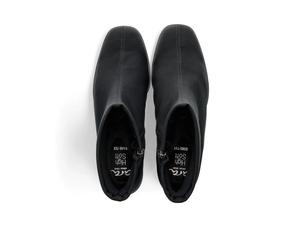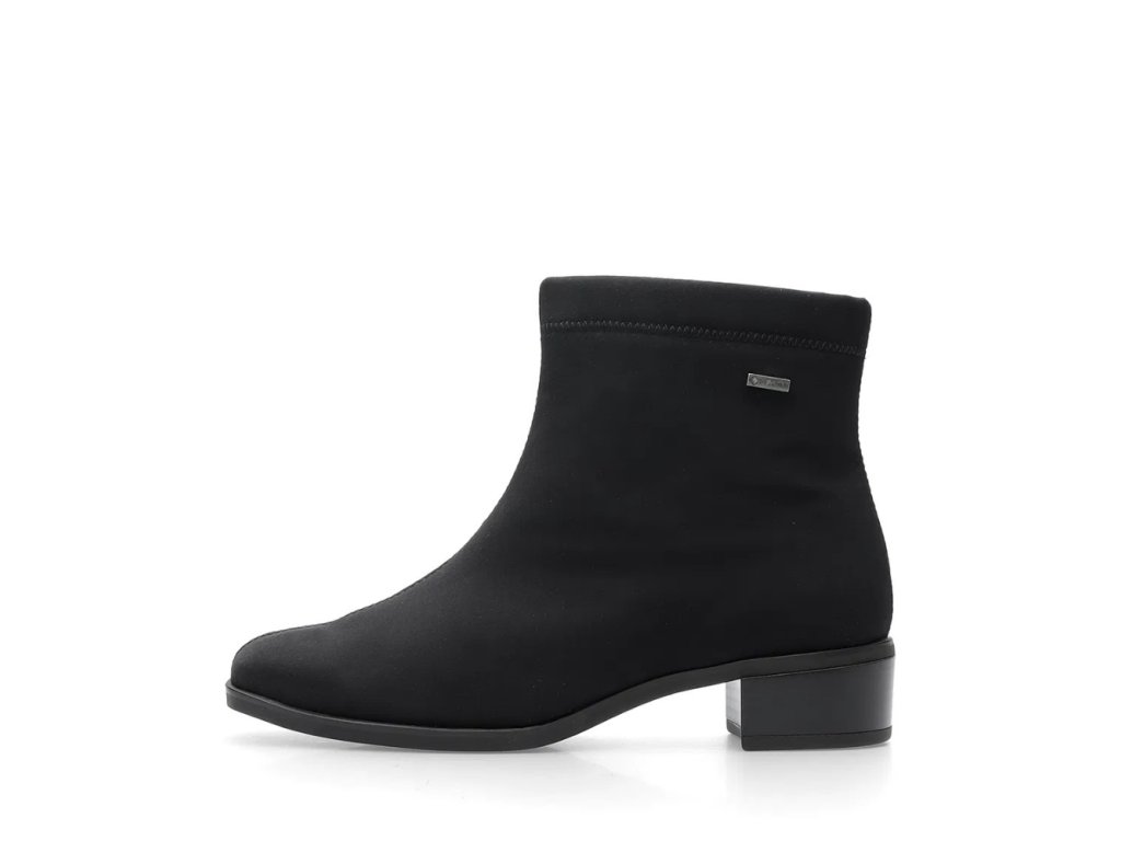 Dámské kotníkové boty Ara Graz v černém provedení z měkkého strečového materiálu představují spojení elegantního stylu, funkčnosti a komfortu. Minimalistický design doplňuje kvalitní zpracování a důraz na pohodlí. Svršek z pružného, poddajného materiálu se perfektně přizpůsobí tvaru nohy a zajišťuje volnost pohybu. Vnitřní textilní podšívka je příjemná na dotek a spolu s prodyšnou voděodolnou membránou Gore-Tex® zajišťuje suché a teplé prostředí i při nepříznivém počasí. Měkce polstrovaná vyjímatelná stélka zaručuje komfort při chůzi a lze ji snadno vyměnit za vlastní ortopedickou vložku. Praktický vnitřní zip usnadňuje obutí i vyzutí. Inovativní technologie HighSoft® kombinuje měkký svršek, pružnou podešev a polstrovanou stélku, čímž poskytuje měkký došlap, odpružení a komfort i při celodenním nošení. Protiskluzová podešev se širokým 3,5cm blokovým podpatkem zajišťuje stabilitu a ženský vzhled. S výškou lýtka přibližně 14 cm je tento model ideální volbou pro přechodné i zimní období. Ara Graz je botou, která spojuje elegantní vzhled, lehkost a funkčnost — ideální pro ženy, které chtějí být stylové a zároveň v pohodlí za každého počasí.