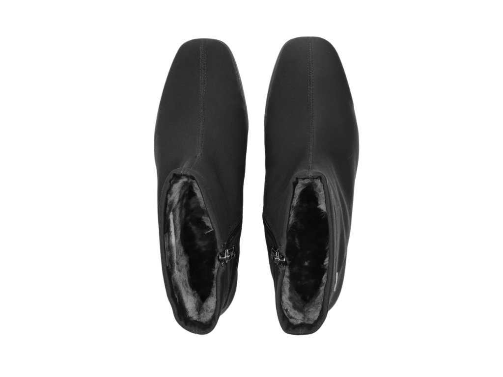 Svršek je vyroben z měkkého stretch materiálu, který se dokonale přizpůsobí chodidlu a zajistí pohodlí během celého dne. Uvnitř se nachází luxusní podšívka z pravého jehněčího kožíšku, která udržuje nohy v teple i v chladném zimním počasí. Vyjímatelná měkká stélka poskytuje komfort a možnost výměny za vlastní ortopedické vložky.