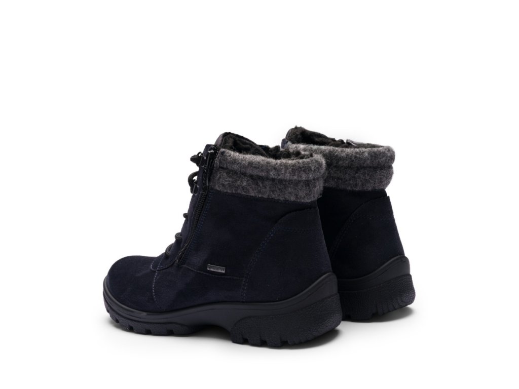 Robustní podešev s 3,5cm podpatkem a hlubokým vzorkem nabízí jistý krok, stabilitu a tepelnou izolaci. Vyjímatelná stélka s měkkým polstrováním, potažená textilií, přispívá k příjemnému klimatu v botě a lze ji vyměnit za vlastní ortopedické vložky.