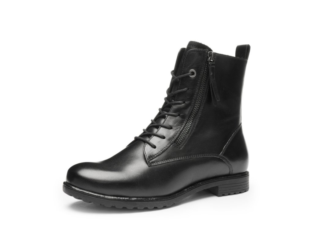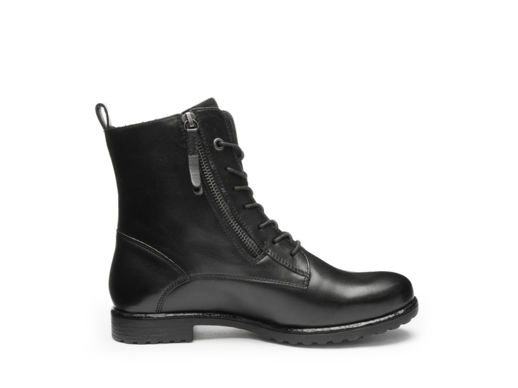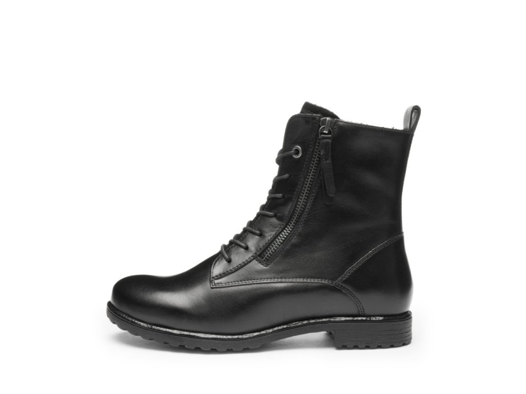 K optimálnímu přizpůsobení slouží kombinace šněrování a dvou funkčních zipů, které zároveň umožňují snadné a rychlé obouvání. Protiskluzová podešev s hrubším profilem a 2 cm vysokým podpatkem poskytuje stabilní krok na různých površích. Výška holeně je 15 cm, což činí z tohoto modelu ideální volbu pro chladné dny.