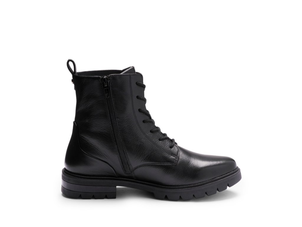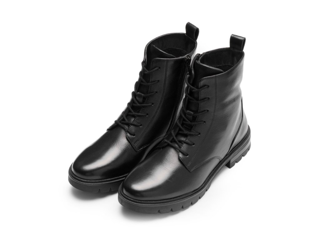 Elegantní kotníková obuv v klasické černé barvě je ideálním společníkem pro chladné dny. Svršek z hladké kůže působí sofistikovaně a doplňuje jej měkká teplá podšívka, která zajistí příjemný pocit i v mrazivém počasí. Praktické šněrování v kombinaci s postranním zipem a poutkem na patě zaručuje snadné obouvání a perfektní přizpůsobení noze.