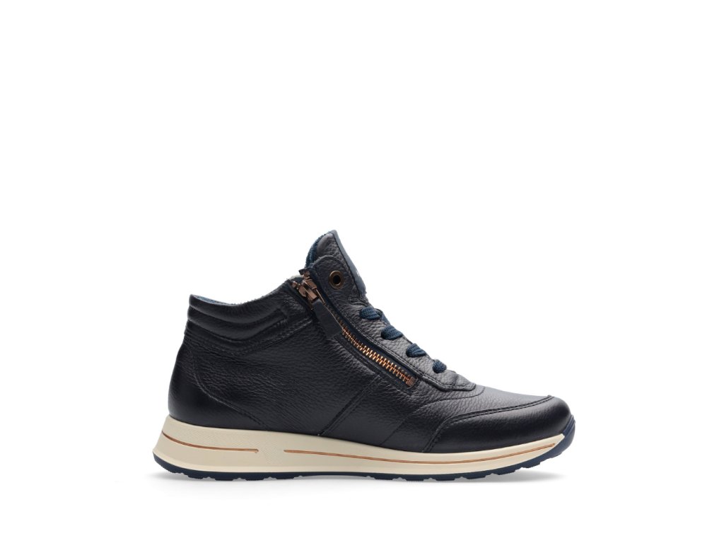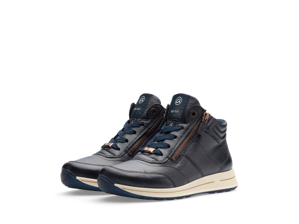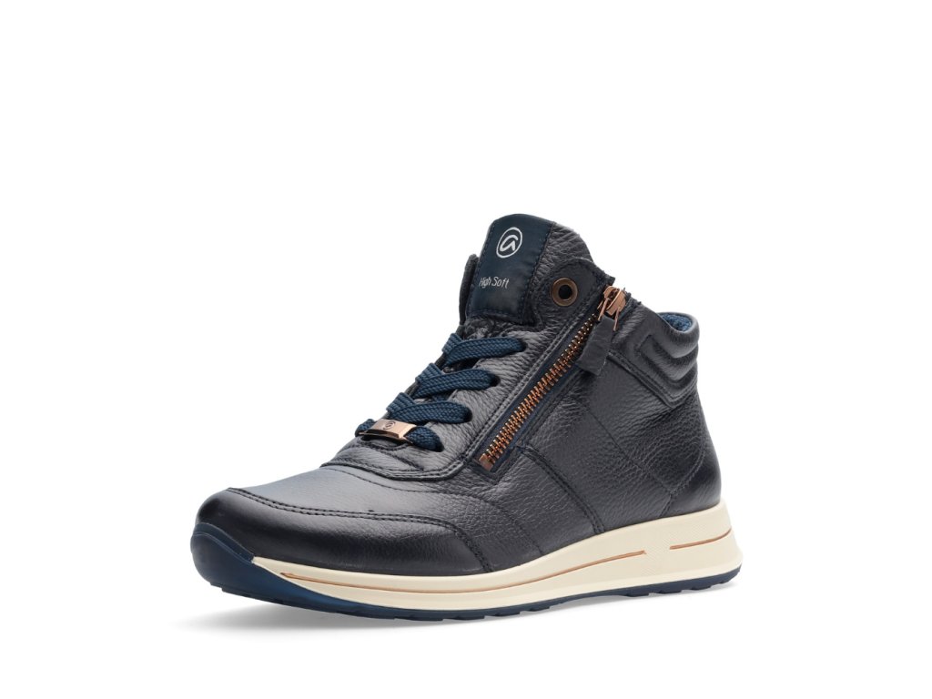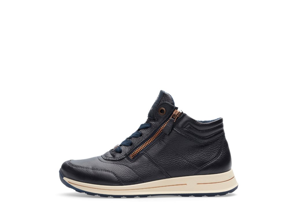 ARA dámské kotníkové tenisky širší s postranními zipy kožené modré | 12-24808-17 Osaka