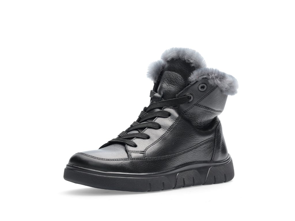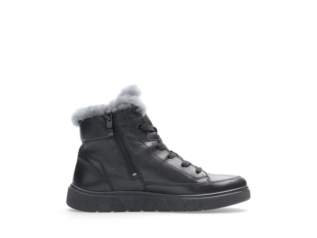 Model Ara Rom-Sport v černém provedení kombinuje sportovní styl a zimní komfort. Vyrobený z kvalitní měkké kůže, nabízí elegantní vzhled a zároveň dlouhou životnost. Polstrovaný lem kolem kotníku chrání před otlaky a zajišťuje pohodlí při každodenním nošení.