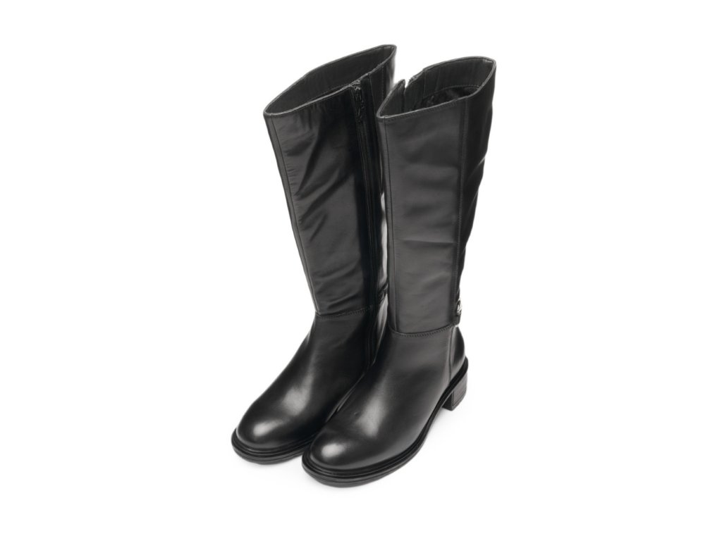 Model ve velikosti L je ideální pro ženy s širším lýtkem – horní obvod činí cca 40 cm (vel. 38), výška kozačky je 37 cm (bez podpatku). Pevná latexová podešev se širším stabilním podpatkem navíc podporuje pohodlnou chůzi a dodává obuvi nadčasový vzhled.