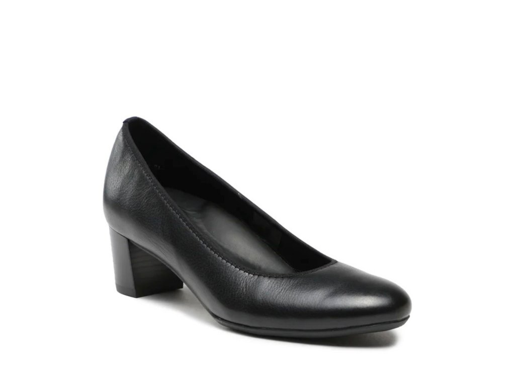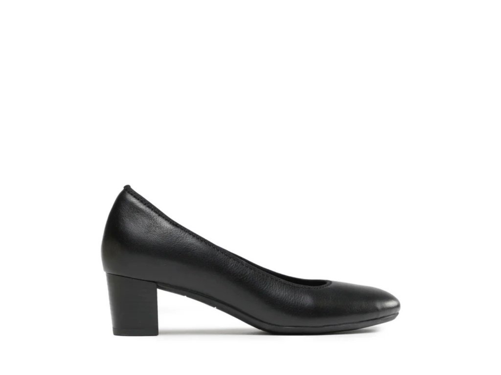 Dámské lodičky Jive v nadčasovém černém provedení nabízejí klasický vzhled spojený s maximálním pohodlím. Svršek z přirozeně strukturované kůže doplňuje kulatá špička a pružný lem po obvodu, který zajišťuje optimální padnutí na nohu. Uvnitř se nachází poddajná kožená podšívka se zabroušeným vnitřním opatkem a extra měkká vyjímatelná vložka potažená syntetikou, vybavená zesílenou patní zónou, ortopedickým srdíčkem a podporou podélné klenby. Inovativní technologie HighSoft® spojuje měkký svršek, polstrovanou stélku a flexibilní podešev pro dokonalý komfort při chůzi. Hrubší latexová podešev se stabilním podpatkem o výšce 4,8 cm a 0,5 cm platformou nabízí jistotu a pohodlí v optimální střední výšce. Díky lepenému způsobu výroby jsou lodičky lehké a flexibilní, ideální pro každodenní nošení i společenské příležitosti.
