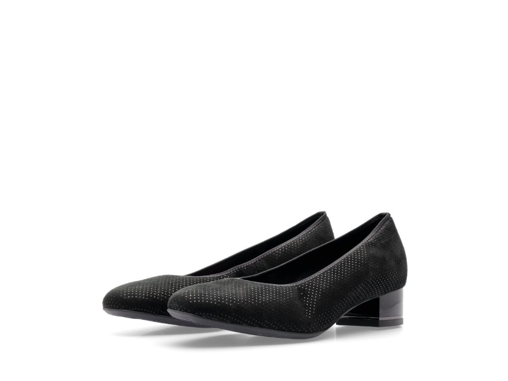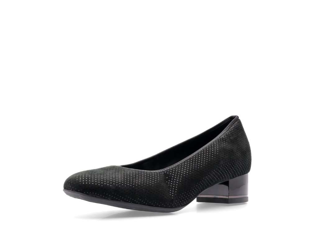 ARA dámské lodičky s jemnými puntíky černé broušené kožené | 12-21838-22 Graz