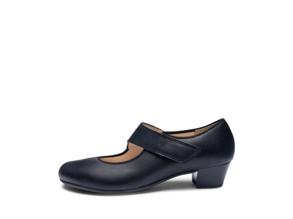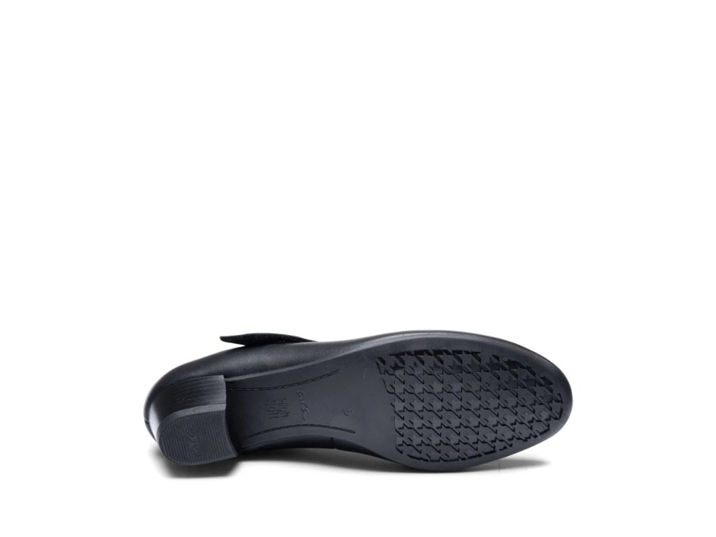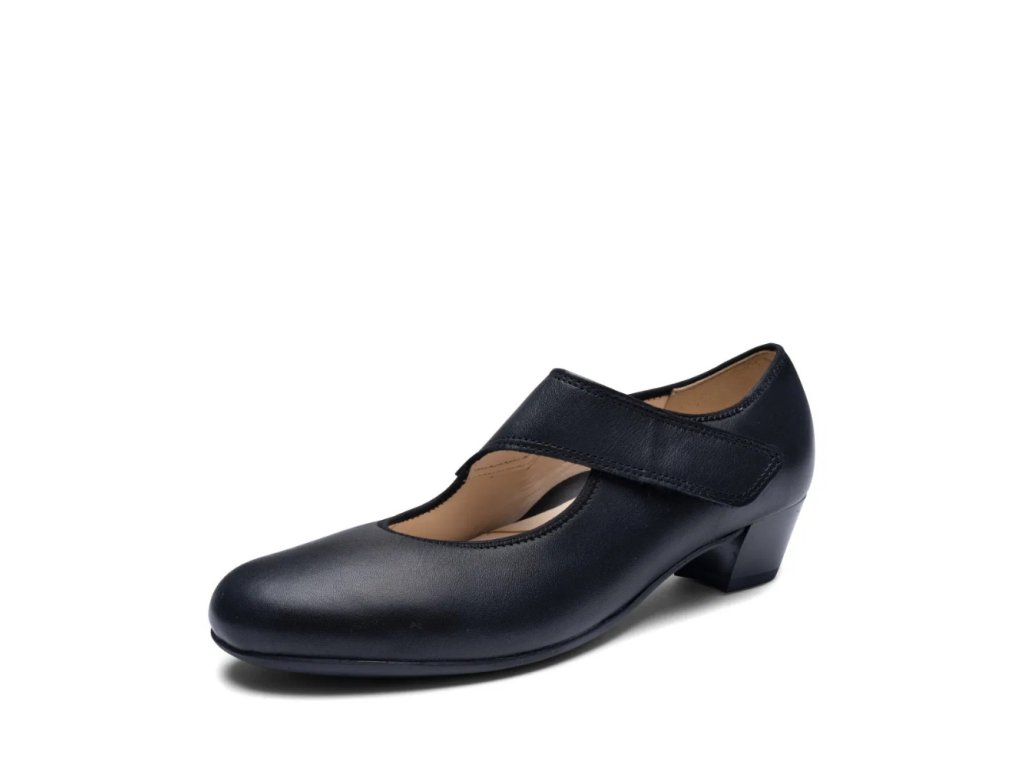 Dámské lodičky Ara v nadčasové černé barvě jsou ideální volbou pro ženy, které hledají spojení elegance a komfortu. Vyrobené z poddajné hladké kůže s měkkou koženou podšívkou a extra komfortní stélkou se skvěle přizpůsobí chodidlu. Širší střih H½, kulatá špička, pružný lem a nártový pásek na suchý zip zajišťují perfektní držení i snadné nazouvání. Inovativní technologie HighSoft® kombinuje měkký svršek a polstrovanou stélku pro výjimečný komfort, zatímco flexibilní latexová podešev s hrubším dezénem a stabilní podpatek o výšce 3,8 cm doplněný o 0,5 cm platformu poskytují pohodlnou chůzi. Lodičky jsou vyrobeny lepeným způsobem, což jim dodává lehkost a flexibilitu, a díky univerzálnímu designu se hodí k pracovnímu i společenskému outfitu.