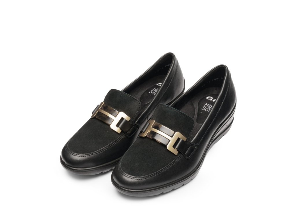 ARA dámské širší mokasíny na klínku se sponou kožené černé | 12-50609-01 Zürich
