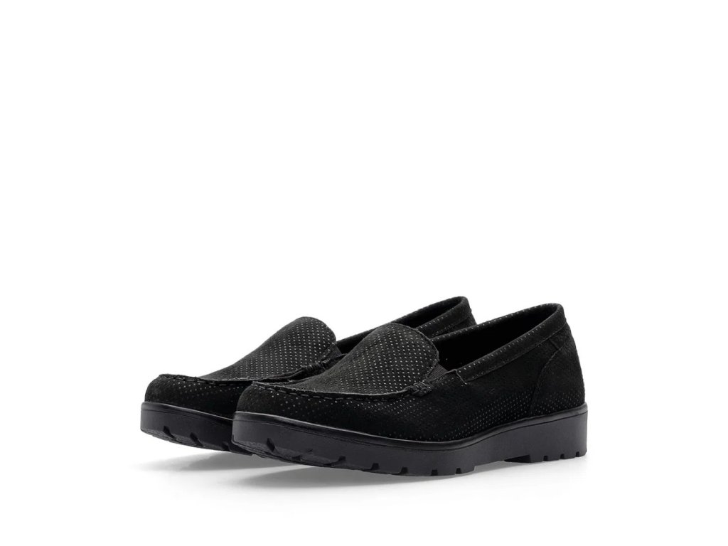 Tyto černé mokasíny Ara z broušené kůže jsou ideální volbou pro ženy, které ocení styl, komfort a kvalitu při každodenním nošení, ať už do práce, do města nebo pro volný čas.