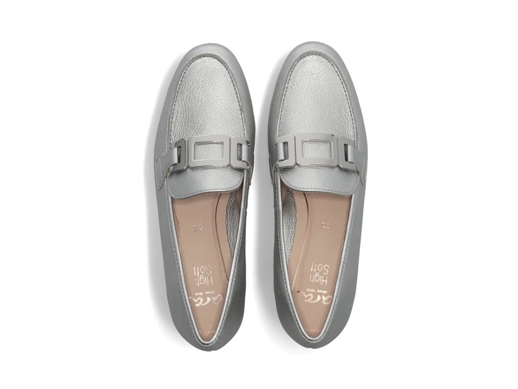 ARA dámské mokasíny se sponou kožené stříbrné | 12-31200-12