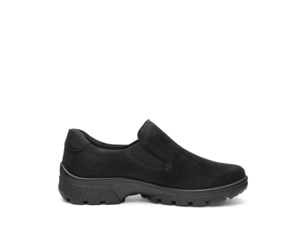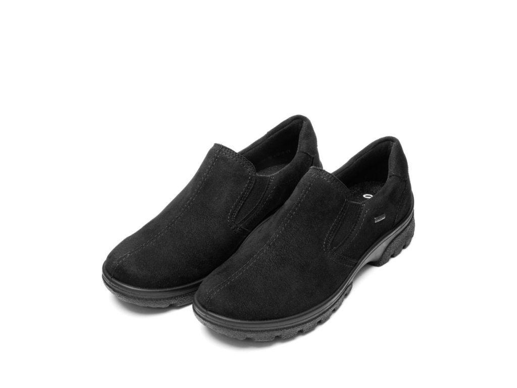 Dámské slip-on polobotky v černé barvě představují skvělou kombinaci pohodlí, funkčnosti a nadčasového designu. Svršek z měkkého syntetického materiálu působí decentně, zatímco praktické gumičky na nártuusnadňují obouvání i zouvání.