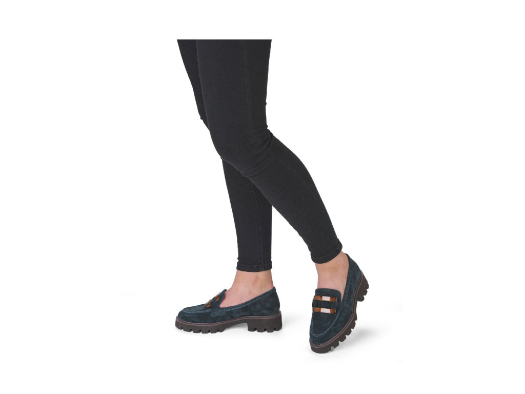 Tato elegantní a pohodlná mokasína osloví i ty nejnáročnější dámy. Vysoce kvalitní kožený svršek doplňuje módní ozdobná spona na nártu, díky čemuž působí obuv mimořádně sofistikovaně. Samozřejmostí je kožená podšívka a pevně zabudovaná, koží potažená stélka. Skutečným komfortním prvkem je technologie HighSoft – kombinace měkkého svrchního materiálu a speciální pěnové vložky v oblasti přední části chodidla, která poskytuje oporu klenbě a maximální flexibilitu. Blokový podpatek se širokou nášlapnou plochou a lehce špičatý tvar opticky prodlužují nohu. Díky šířce F1/2 je tento model ideální volbou pro ženy s užšími chodidly. Skvěle se hodí k mnoha outfitům a zaručeně potěší každou milovnici stylu.