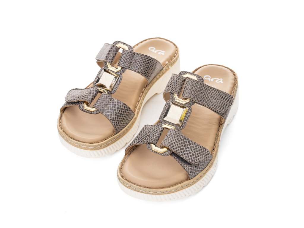 ARA dámské pantofle na suchý zip šedé s odleskem kožené | 12-39103-05 Capri