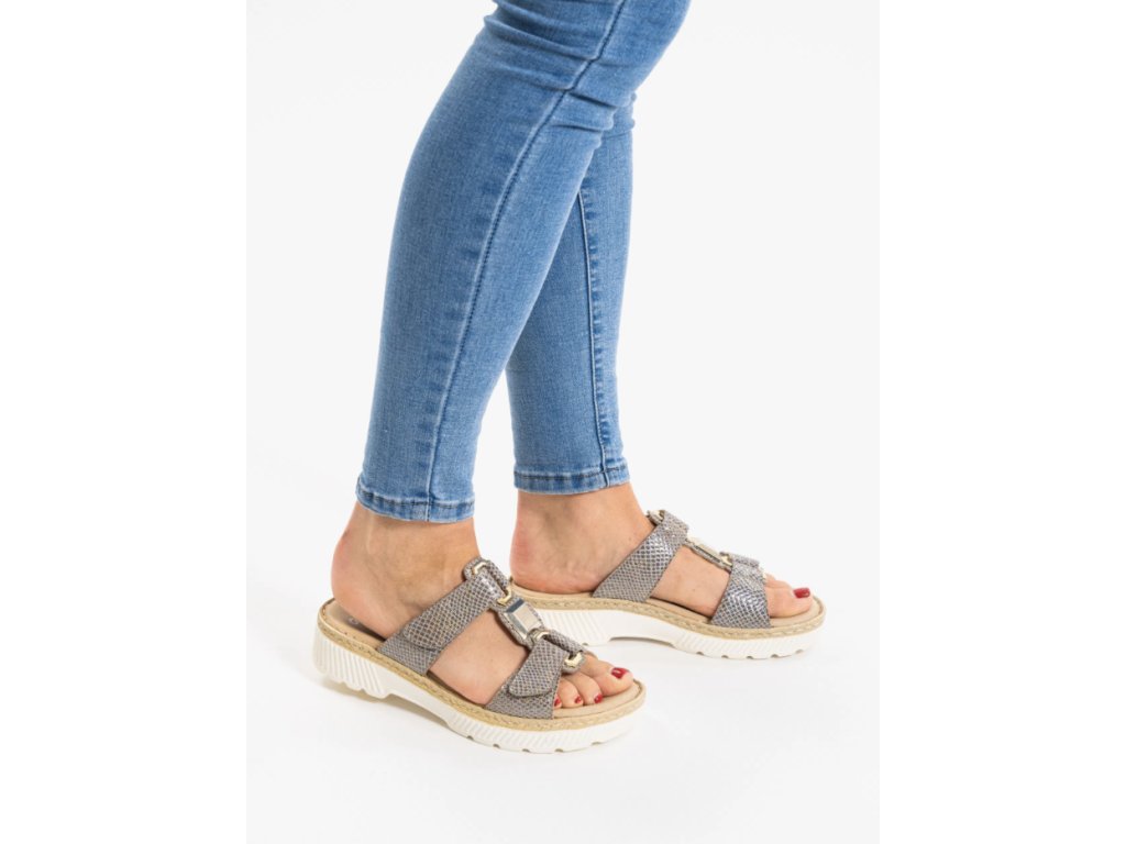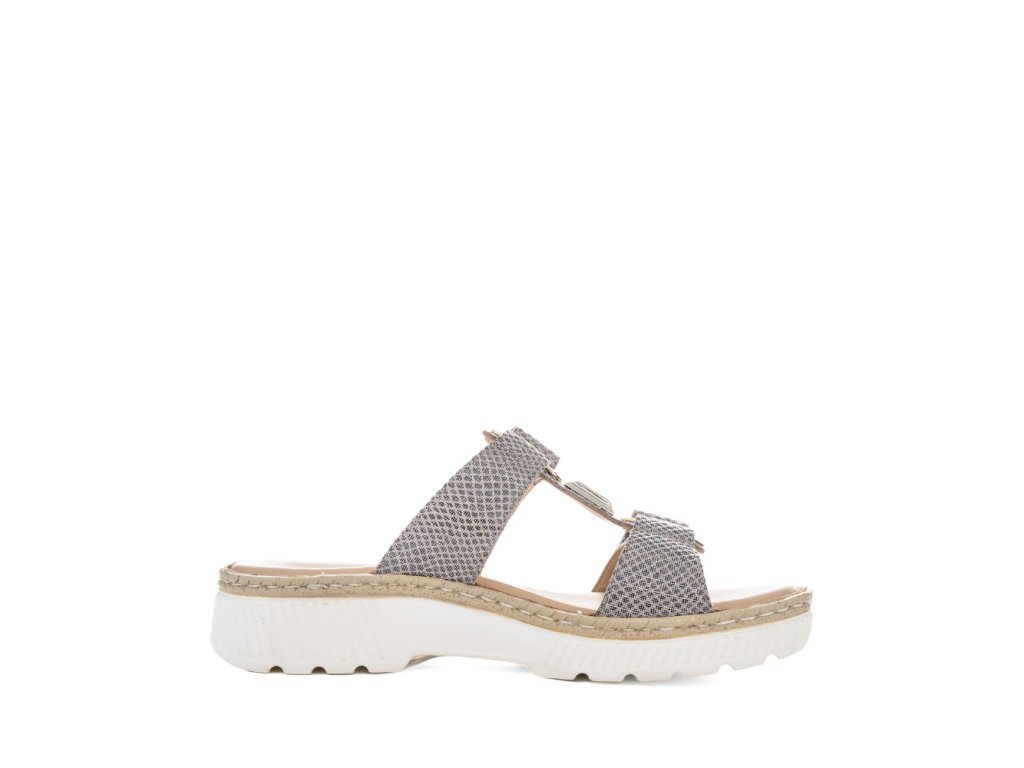 Tato letní pantofle kombinuje lehkost s atraktivním designem a maximálním komfortem. Elegantní ozdobný prvek na nártu dodává stylový akcent a činí botu skutečným poutačem pozornosti – ideální pro teplé dny a pohodové příležitosti. Měkce polstrovaná stélka nabízí jedinečný pocit nošení a optimálně podporuje nohu. Díky inovativní technologii HighSoft si užijete mimořádně měkký došlap, který šetří vaše nohy i při delších trasách. Praktické suché zipy umožňují individuální přizpůsobení, takže bota perfektně sedí. Protiskluzová podešev zajišťuje jistý krok, zatímco sportovní design podešve dodává moderní a trendy vzhled. Vyrobeno z obzvlášť lehkých materiálů, tato pantofle je opravdovým lehkým společníkem, který vám zpříjemní léto. Perfektní volba pro stylové a pohodlné nošení!