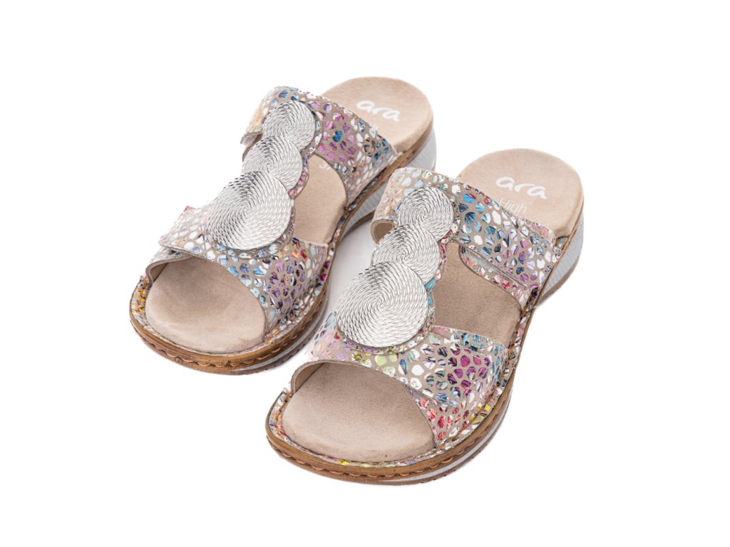 ARA dámské pantofle šedé s barevným potiskem kožené | 12-29004-07 Hawaii