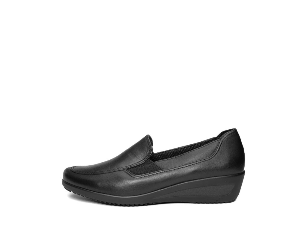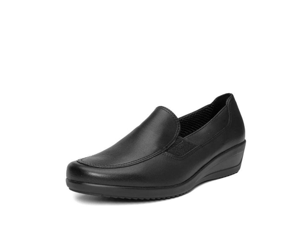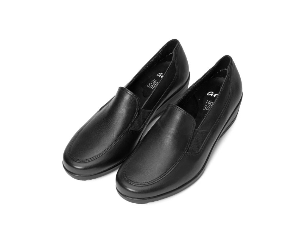 Dámské polobotky Zürich v černém provedení kombinují styl, pohodlí a praktičnost. Svršek z kvalitní hladké kůže působí elegantně a zároveň je příjemně měkký. Pohodlná šíře H a gumičky po stranách umožňují snadné nazouvání i optimální padnutí. Extra měkká, vyjímatelná stélka a inovativní technologie HighSoft® poskytují dokonalé odpružení a komfort i při dlouhodobém nošení. Protiskluzová podešev a decentní 3cm klínový podpatek zajišťují stabilitu a dodávají botě sportovně-elegantní charakter. Díky mikrovláknové podšívce se bota příjemně nosí a je vhodná pro celodenní chůzi. Tento univerzální model je ideální jak pro každodenní nošení, tak pro pracovní prostředí či volný čas – elegantní, lehký a vždy pohodlný společník.