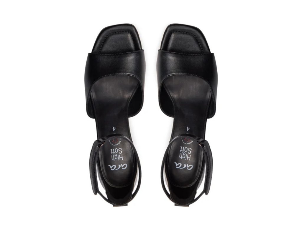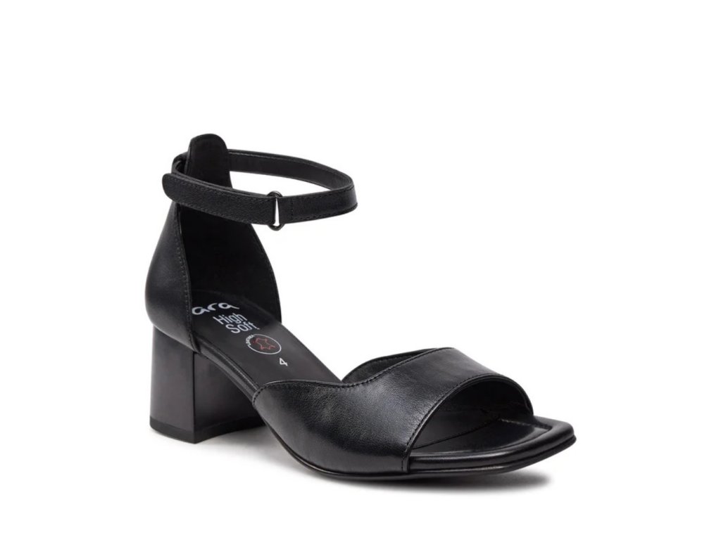 ARA dámské sandály na podpatku s kotníkovým páskem kožené černé | 12-20503-01