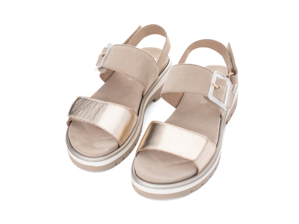 ARA dámské sandály na suchý zip béžovo-zlaté kožené | 12-21003-09 Malaga
