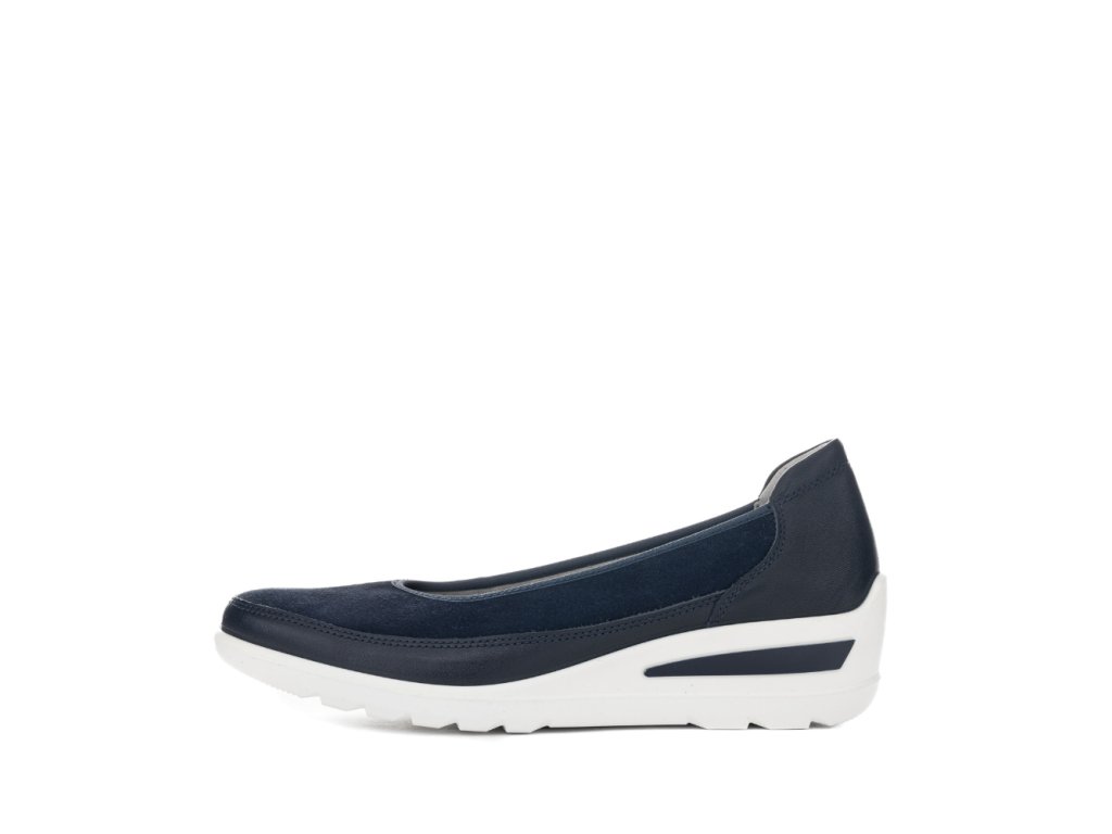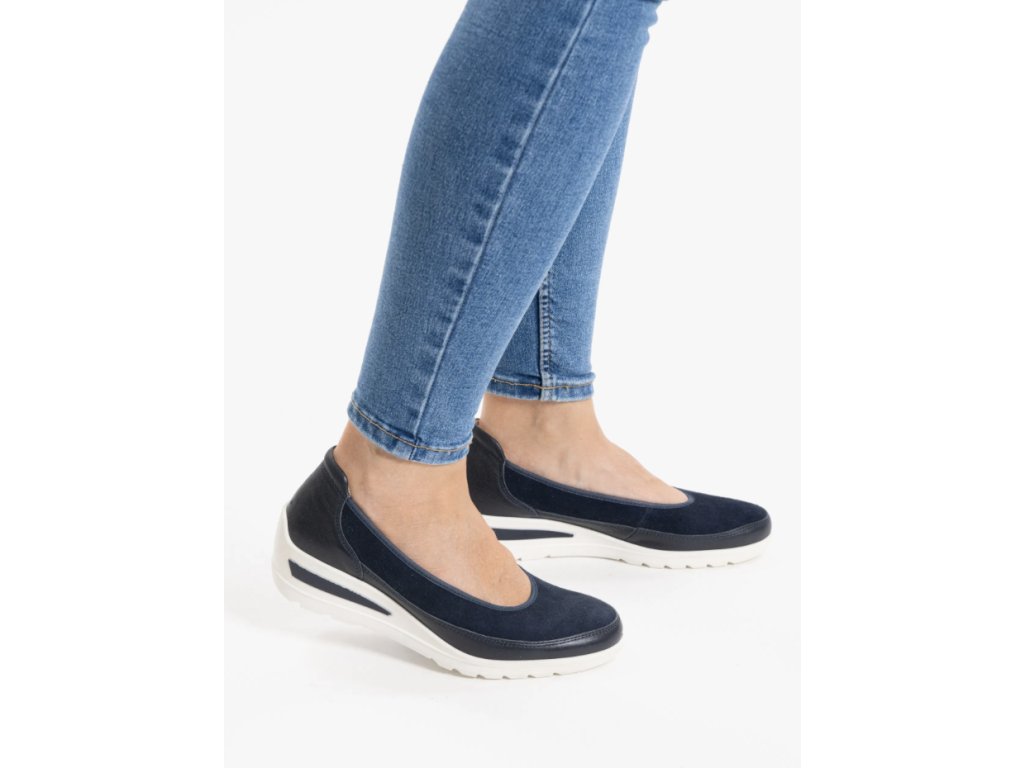 Tento model balerín Zürich v modré barvě zaujme svou jednoduchou elegancí a sportovním nádechem. Vyrobený z kvalitní, měkké kůže nabízí nejen stylový vzhled, ale i mimořádně příjemný pocit při nošení. Pohodlná měkce polstrovaná stélka, kterou lze v případě potřeby vyměnit, zajišťuje individuální komfort. Díky inovativní technologii HighSoft si užijete výborné tlumení a chůzi bez únavy – ideální pro dlouhé dny. Protiskluzová podešev poskytuje jistotu při chůzi, zatímco módní klínový podpatek zdůrazňuje sportovní charakter obuvi. Měkká podšívka a optimální střih s kulatým výstřihem zajišťují pohodlí po celý den. Díky nadčasovému designu se boty snadno kombinují s různými outfity a hodí se jak do práce, tak pro volný čas.