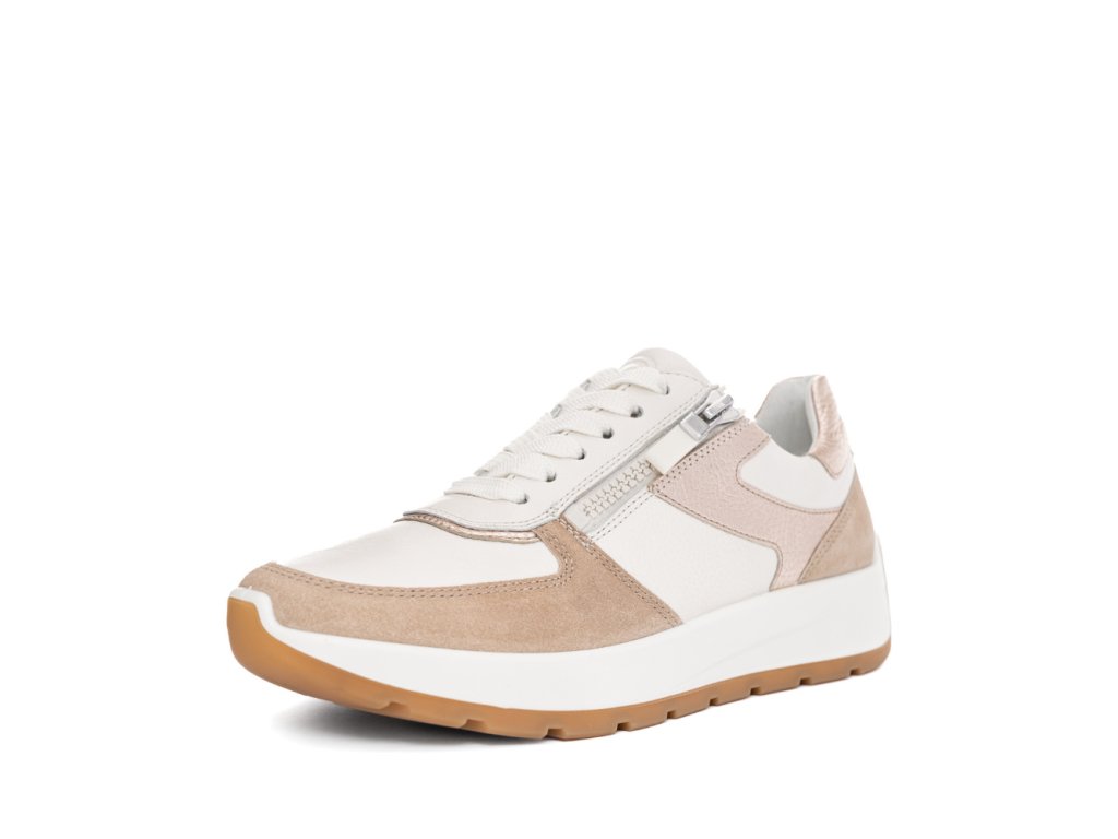 Tento moderní sneaker zaujme nejen svěžím barevným laděním v odstínech krémové a béžové, ale i svou funkčností. Díky technologii High Soft se bota perfektně přizpůsobí chodidlu a zaručuje měkký došlap. Měkké polstrování po celém obvodu předchází nepříjemným otlakům, zatímco froté podšívka zajišťuje příjemné klima a vysokou prodyšnost.