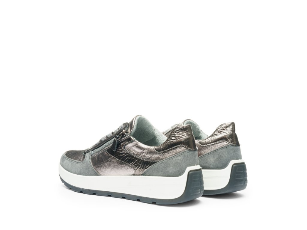 Trendy tenisky v grafitově šedé barvě s metalickými akcenty kombinují moderní design s maximálním pohodlím. Svršek z kvalitní kůže doplňuje měkká froté podšívka na bázi bambusových vláken, která je prodyšná, odvádí vlhkost a udržuje příjemné klima nohou. Vyjímatelná stélka potažená froté zvyšuje komfort a umožňuje použití vlastních vložek.