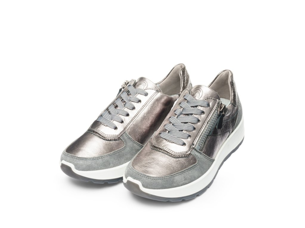 ARA dámské širší tenisky metalické kožené stříbrné | 12-25112-11 New York