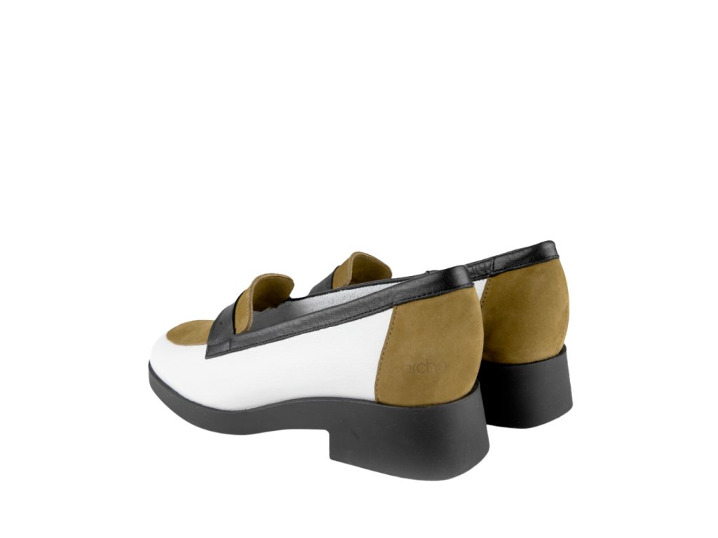 ARCHE dámské mokasíny na podpatku kombinované bílé kožené | TAIKMO BLANC SABANA