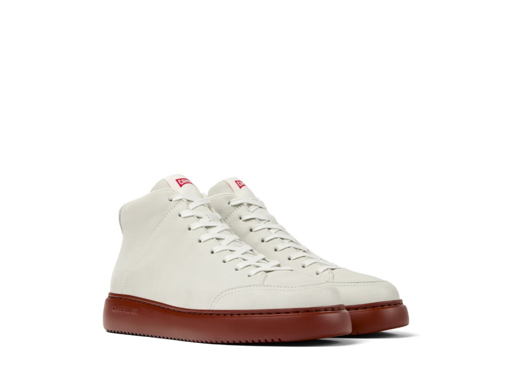 Model Camper K400648-014 v sobě spojuje minimalistický vzhled s precizním řemeslným zpracováním. Svršek z jemné bílé kůže působí svěže a elegantně, zatímco kontrastní podrážka v teple červenohnědém tónu dodává botám osobitý charakter. Kotníkový střih poskytuje lepší oporu a stabilitu, ať už se vydáte do města, do práce nebo na volný víkend. Měkká vnitřní podšívka a polstrovaná stélka zajišťují pohodlí po celý den. Díky spojení klasické elegance s moderním kontrastem je tento model ideální volbou pro muže, kteří chtějí vyniknout nenuceným stylem a pohodlím.