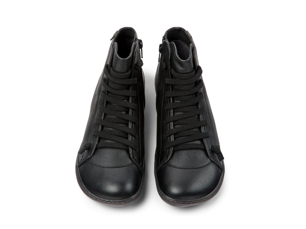 Model Camper Peu je symbolem jednoduchosti a funkčnosti. Inspirován chůzí naboso nabízí pocit svobody a přirozeného pohybu. Tyto dámské kotníkové boty jsou vyrobené z prémiové teletiny bez použití chromu a doplněné recyklovaným PET materiálem, čímž spojují moderní styl s ohledem na udržitelnost.