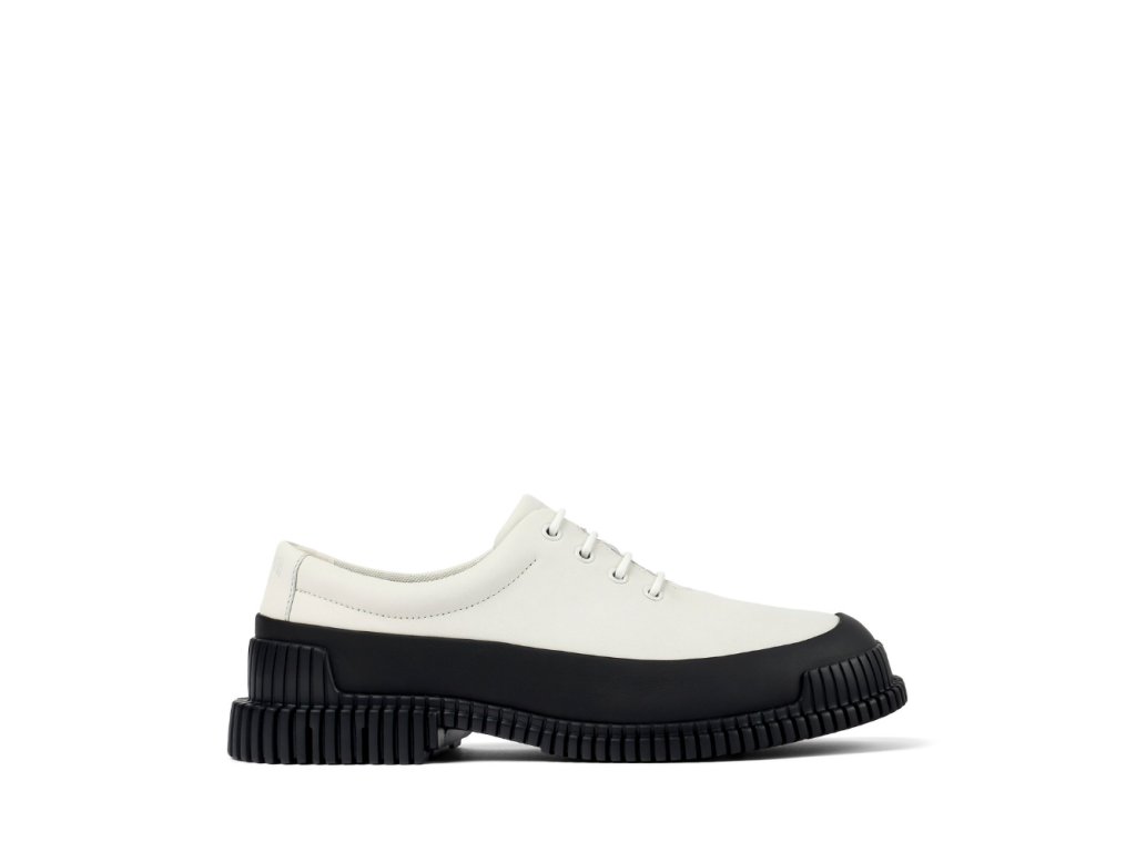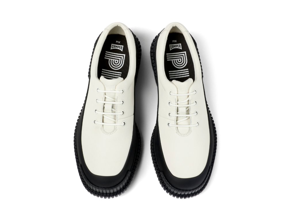 Model Camper Pix K200687-058 je odvážným vyjádřením moderního stylu. Elegantní silueta v jemné bílé barvě je doplněna kontrastní černou podrážkou s výraznou strukturou, která přitahuje pozornost a zároveň zajišťuje výbornou stabilitu. Kožený svršek nabízí prvotřídní kvalitu a měkkost, zatímco anatomicky tvarovaná stélka podporuje celodenní pohodlí. Tyto šněrovací boty představují ideální volbu pro ženy, které hledají výjimečný kousek obuvi do městského prostředí s osobitým designem a špetkou futurismu.