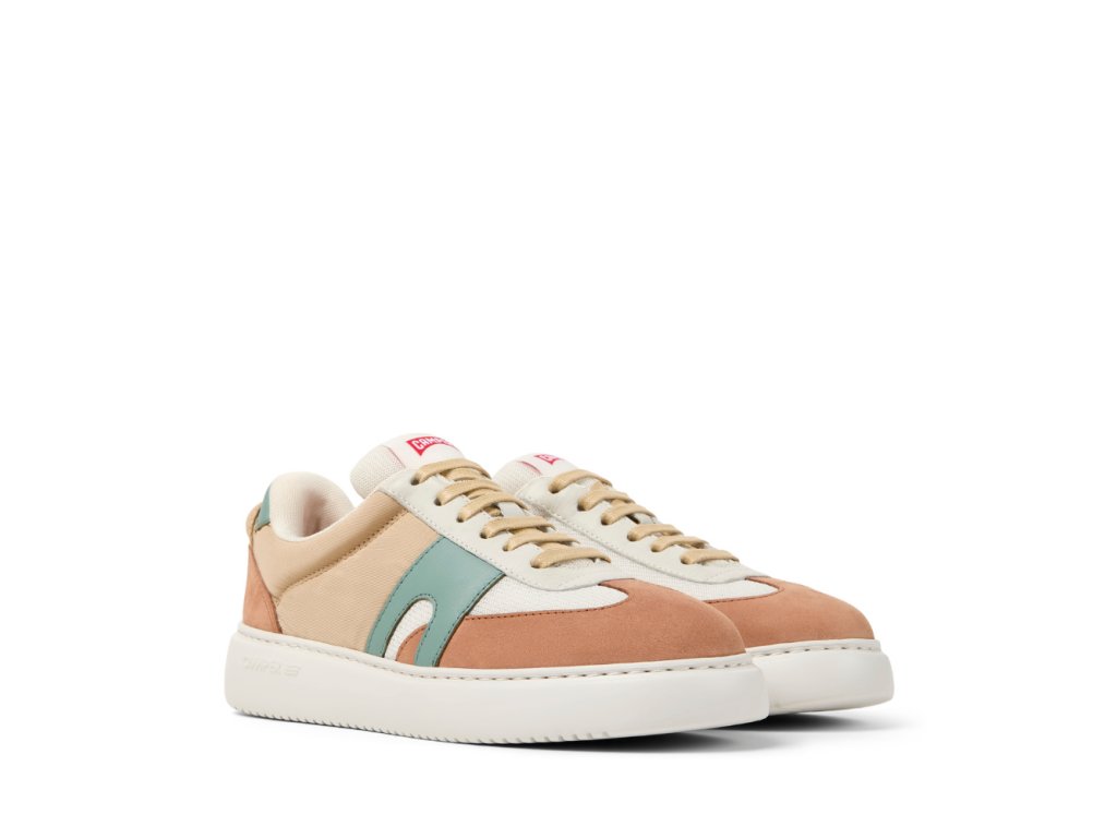 Dámské tenisky Camper Runner K21 Sorona® představují spojení retro stylu a moderních ekologických materiálů. Svršek z kombinace nubukové kůže a textilního materiálu zajišťuje prodyšnost a pohodlí při nošení. Vnitřní podšívka z textilu je příjemná na dotek a usnadňuje udržování obuvi v čistotě. Klasické šněrování umožňuje individuální přizpůsobení noze. Gumová podešev je trvanlivá a odolná proti poškození. Tenisky jsou ideální pro každodenní nošení.