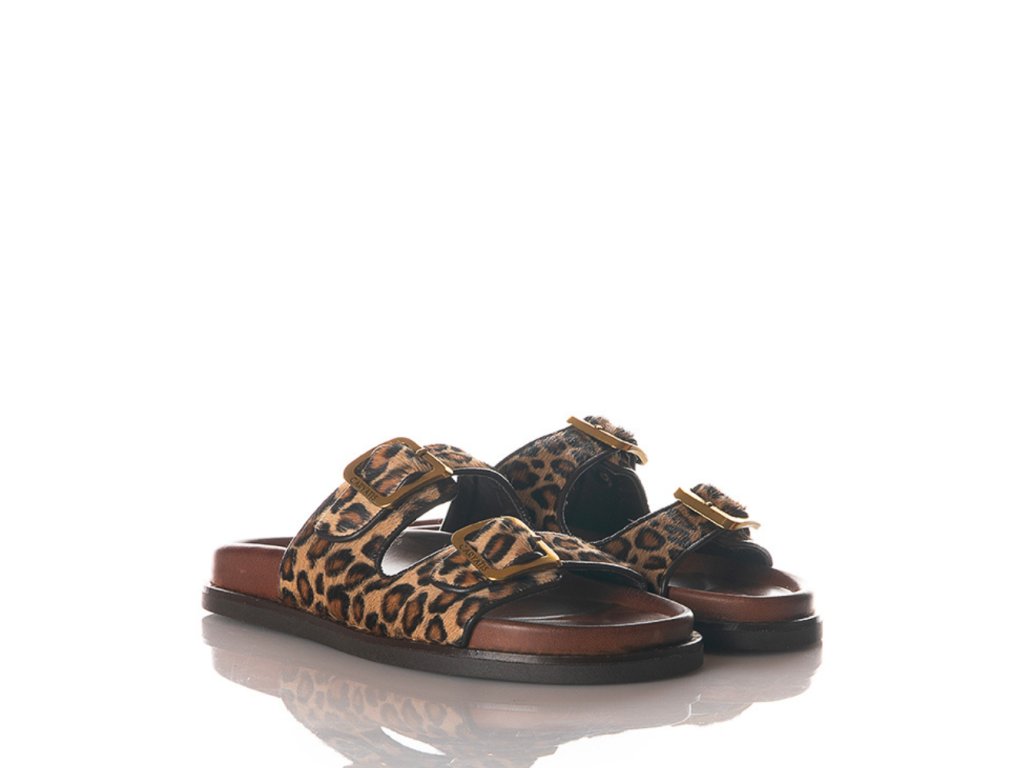 CARYATIS dámské pantofle s chlupem a leopardím vzorem kožené | 68005 BLACK-LEOPARD