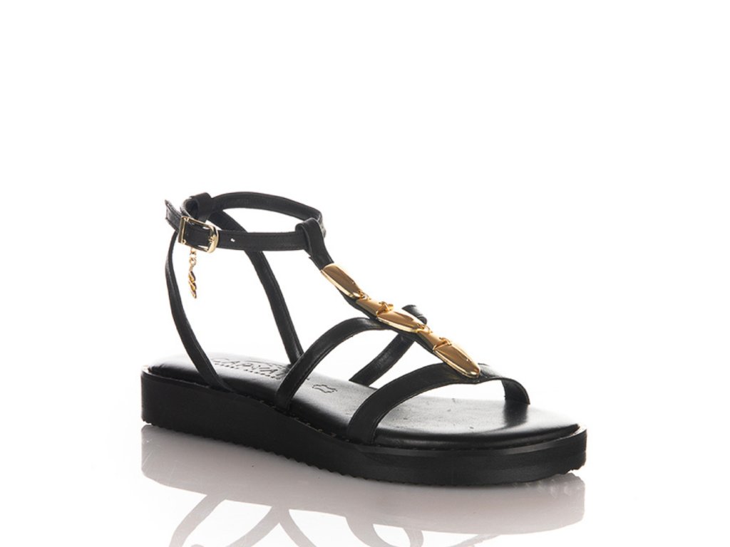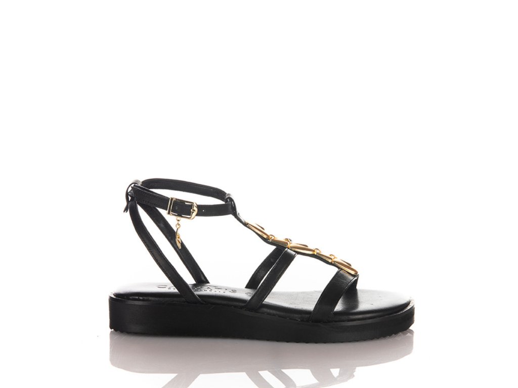 CARYATIS dámské sandály se zlatým zdobením černé kožené | 642106 BLACK-GOLD