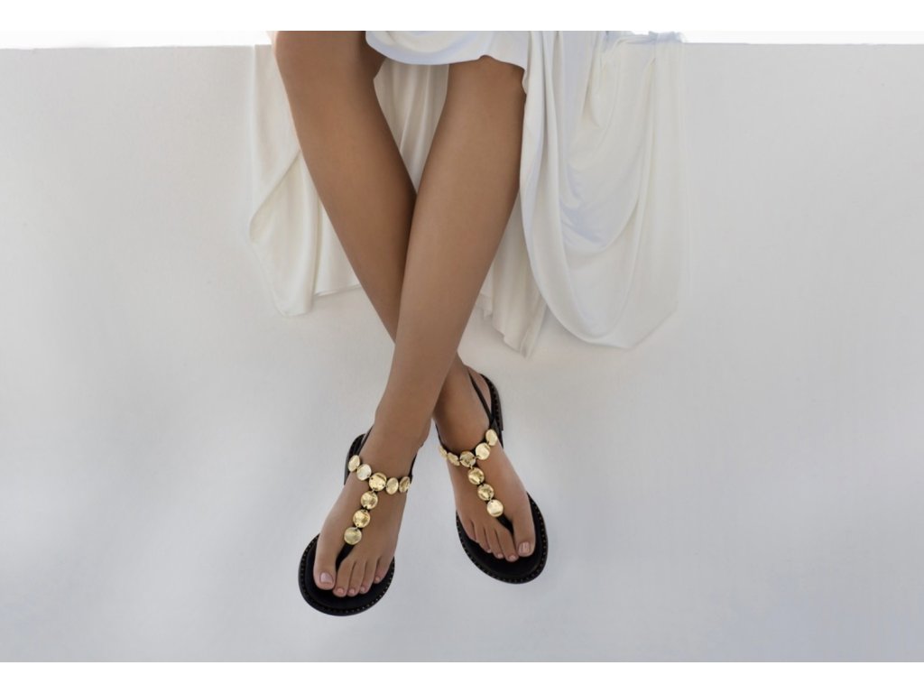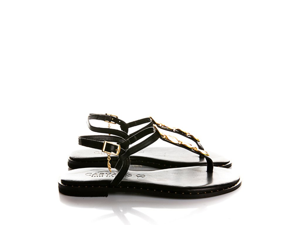 CARYATIS dámské sandálky se zlatým zdobením černé kožené | 621507 BLACK-GOLD