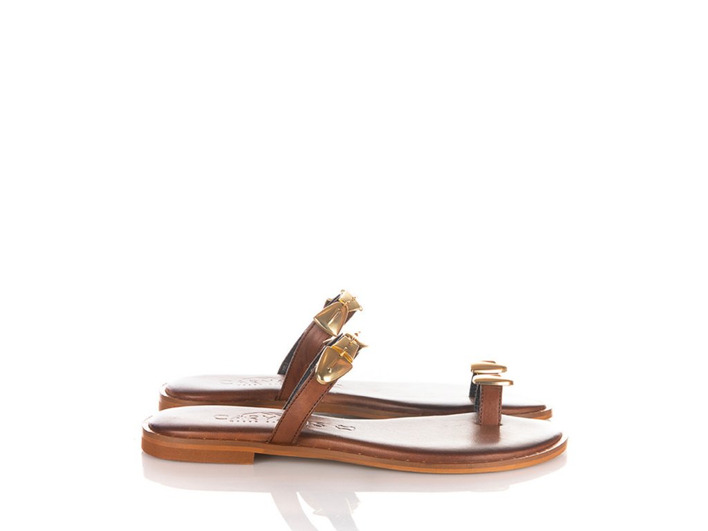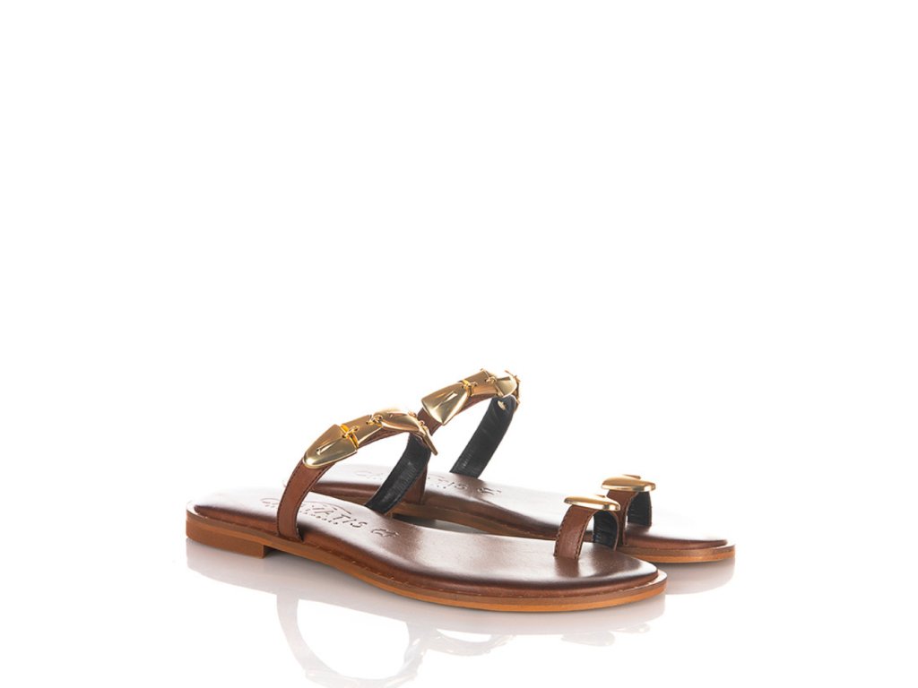 CARYATIS dámské žabky se zlatým zdobením tmavě hnědé kožené | 621306 BROWN-GOLD