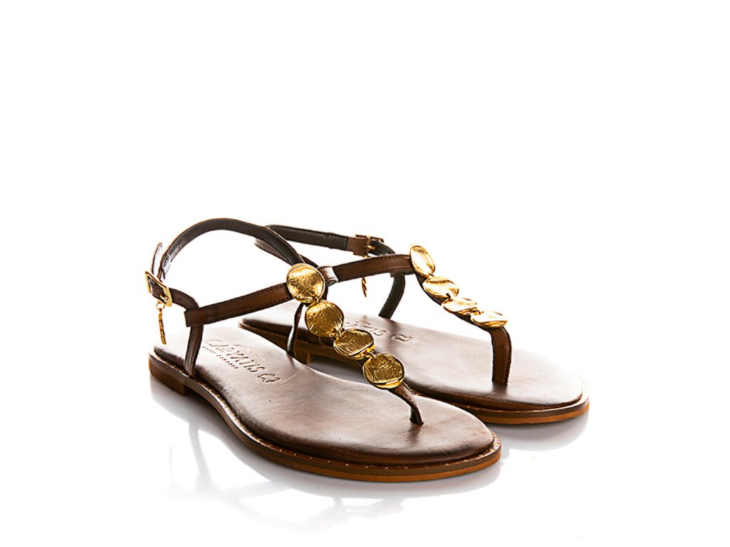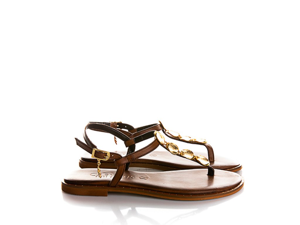 CARYATIS dámské sandálky se zlatým zdobením tmavě hnědé kožené | 621507 BROWN-GOLD