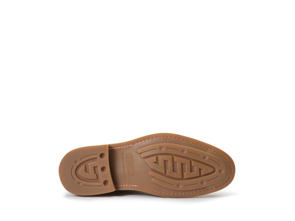 Podrážka z měkké karamelové gumy se sportovním protiskluzovým profilem nabízí výbornou stabilitu a pohodlí, zatímco charakteristická robustnější pata dodává botě výraz a osobitý šarm.