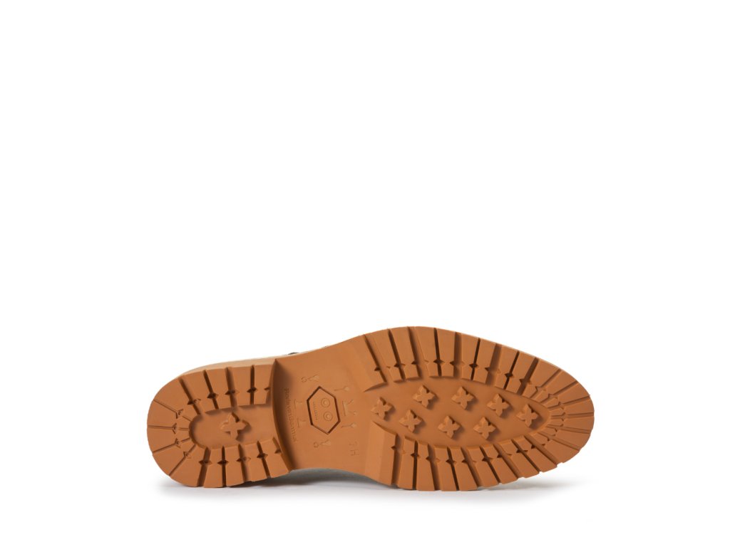 Tato elegantní pánská derby obuv vyniká tmavě hnědou barvou profilované podešev, která je luxusně zakončena dvojitou koženou obrubou. Díky H-šířce je model vhodný i pro širší chodidla nebo vyšší nárt, což podporuje i praktické šněrování ve stylu derby.
