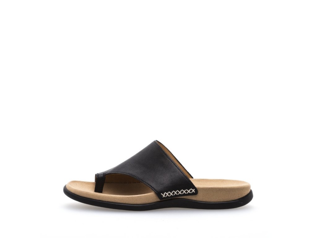 GABOR dámské pantofle mezi prsty černé kožené | 03.700.27