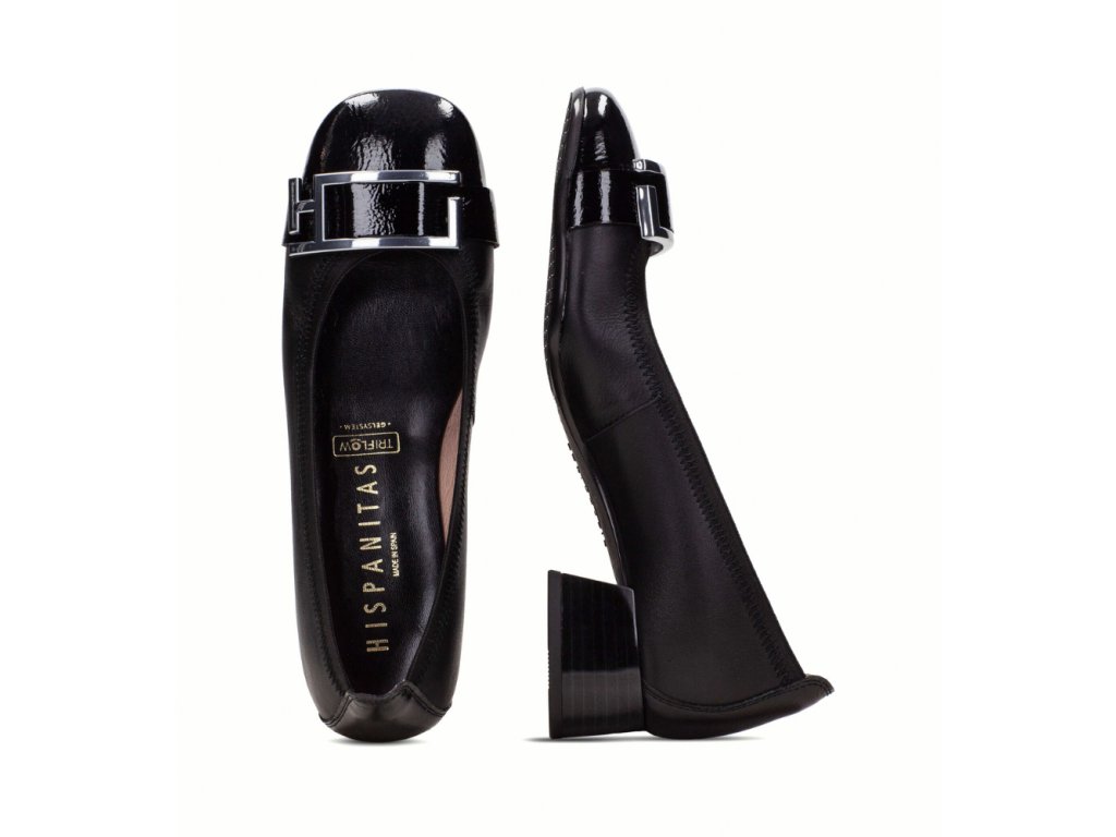 HISPANITAS dámské lodičky černé kožené s lakovanou špičkou | HI243670 BLACK