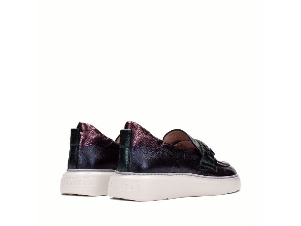 Elegantní a moderní kožené mokasíny v tmavě modrém provedení kombinují stylový vzhled s maximálním pohodlím. Obuv má zaoblenou špičku, praktické nazouvání a zvýšenou platformovou podrážku, která nejen přidá výšku, ale také zaručí pohodlný došlap. Vnitřní část i stélka jsou vyrobeny z kvalitní kůže, která se přizpůsobí noze a poskytne příjemný pocit po celý den. Design je doplněn výraznou ozdobnou přezkou na nártu, která botám dodává moderní a osobitý vzhled.