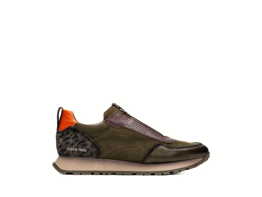 HISPANITAS dámské tenisky nazouvací kožené zelené | CHI254311 ARMY
