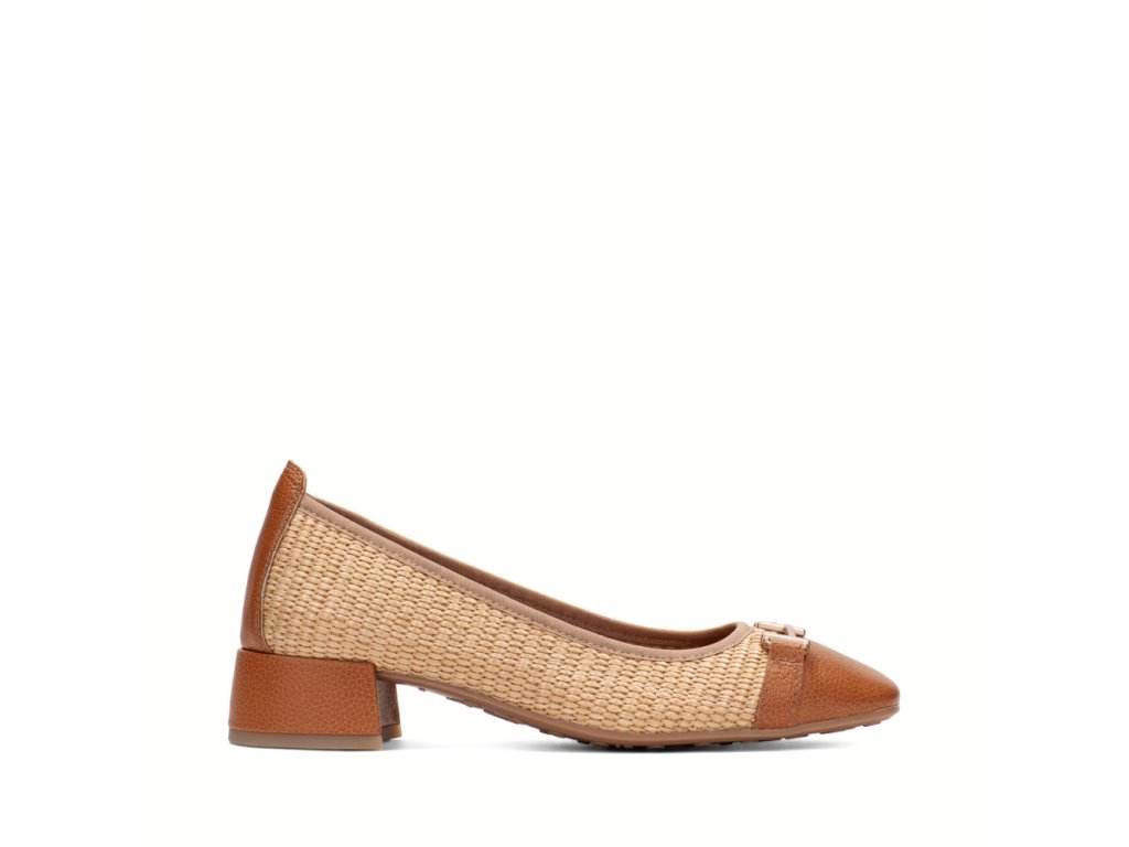 Stylové lodičky s elegantním kovovým detailem na nártu vynikají svým univerzálním vzhledem. Mají zaoblenou špičku a nízký 3cm široký podpatek, který zajišťuje pohodlí i při celodenním nošení. Protiskluzová podešev poskytuje stabilitu při chůzi. Boty jsou vyrobeny z kvalitní kůže v kombinaci s pleteným rafiem, což jim dodává jedinečný vzhled. Díky technologii Triflow s trojitým polstrováním v oblasti došlapu jsou maximálně pohodlné a tlumí nárazy při chůzi. Ideální volba pro každou příležitost.