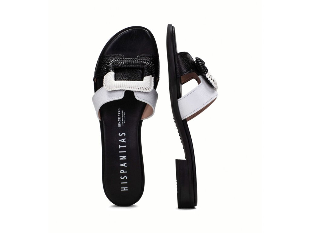 HISPANITAS dámské pantofle černobílé kožené | HV253881 BLACK