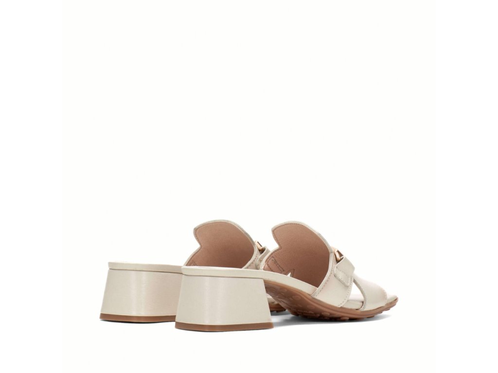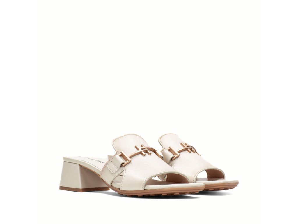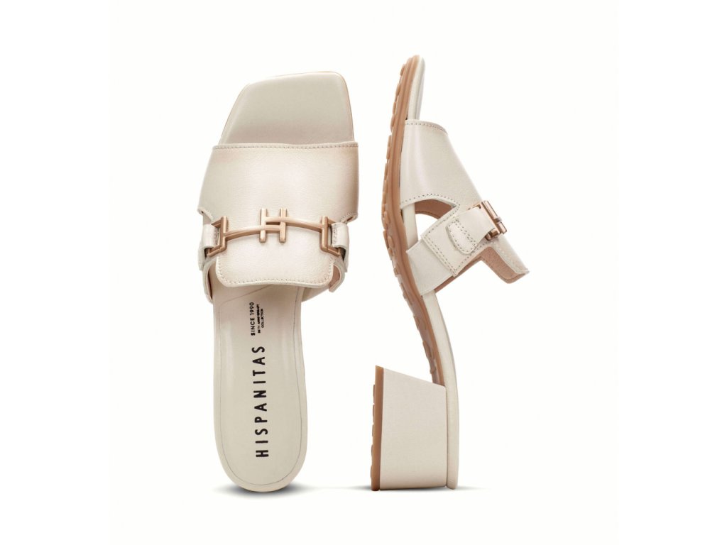HISPANITAS dámské pantofle krémové na podpatku s přezkou | HV254069 LATTE