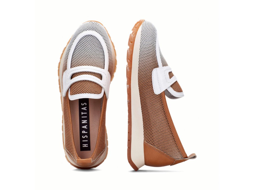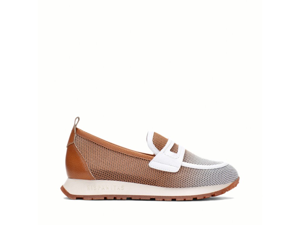 HISPANITAS dámské mokasíny bílo-hnědé kombinované kožené | BHV254043 CUOIO