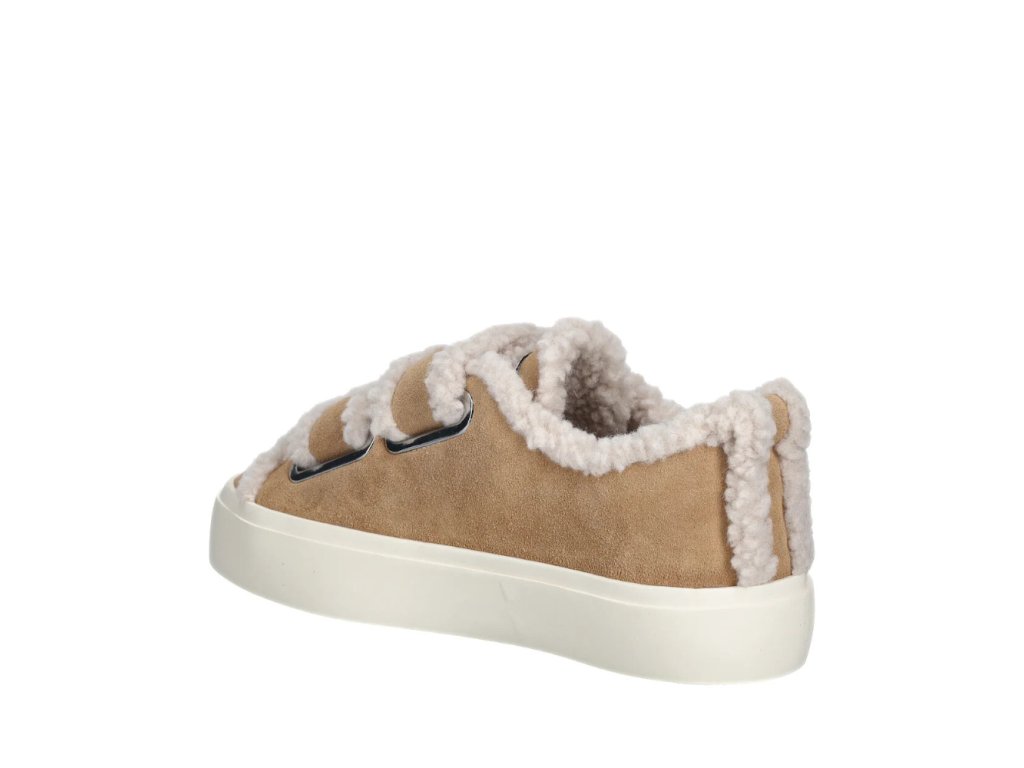 INUIKII dámské tenisky zateplené kožené béžové | SHEARLING LOW VELCRO BEIGE