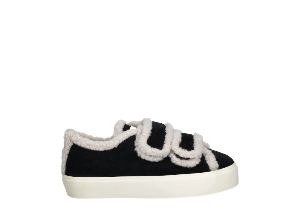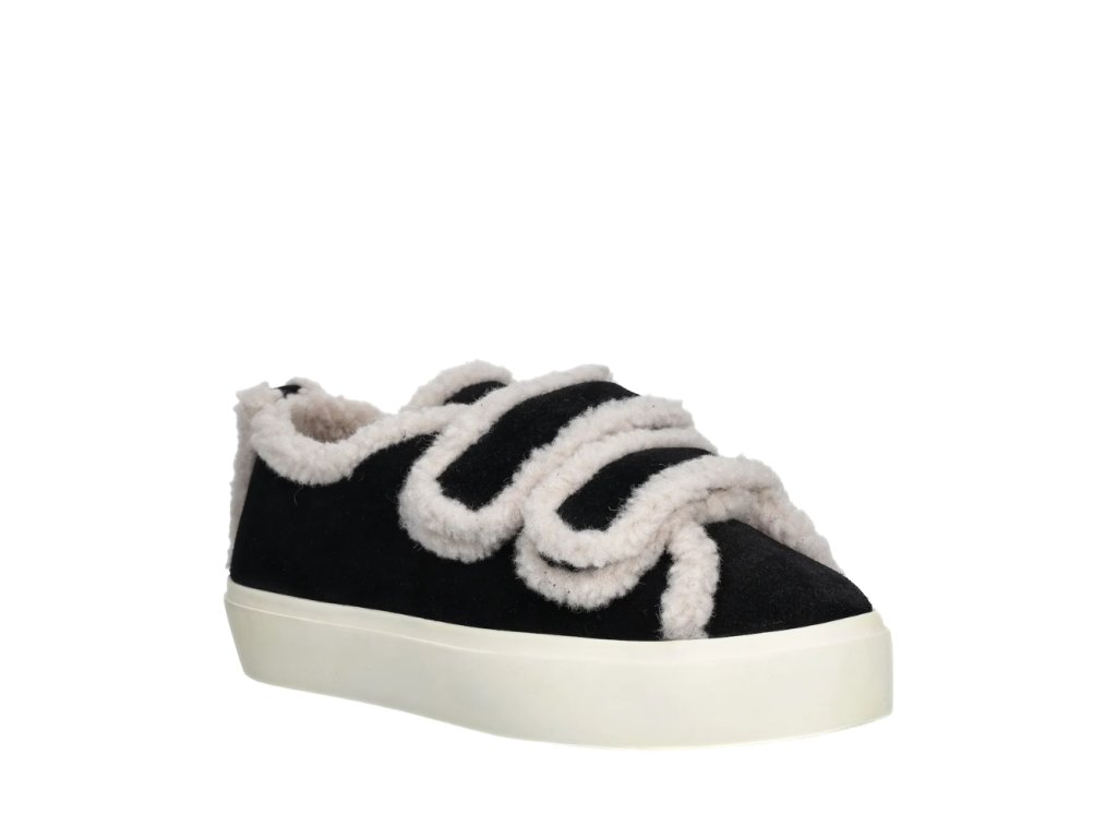 INUIKII dámské tenisky zateplené kožené černé | SHEARLING LOW VELCRO BLACK
